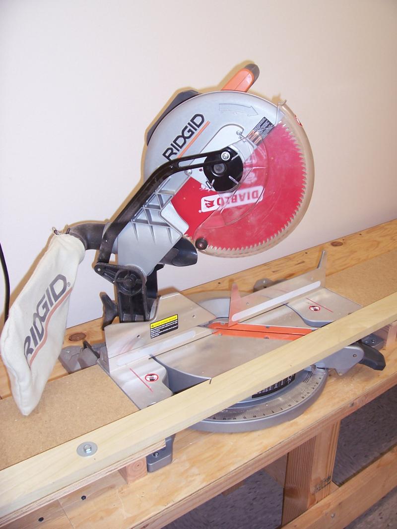 Wooden frames are cut with a special crosscut blade on our 12" compound miter saw, mounted upon a purpose-built bench.